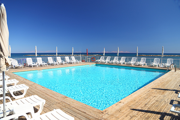 A disposizione degli ospiti una piscina esterna con acqua di mare e idromassaggio, posizionata sulla spiaggia privata dell'hotel.
