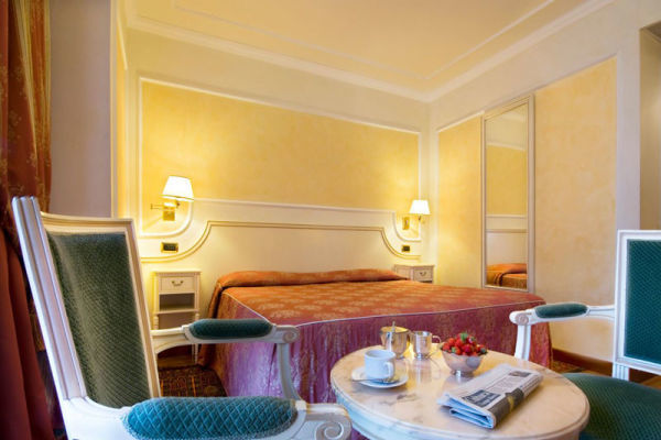 DOPPIA ECONOMY : Tipologia di camera più semplice, che dispone di un divano o di una poltrona letto, ubicata nell'edificio principale o nell'edificio Sporting collegato, ha pavimenti in legno e un bagno con decorazioni a mosaico. Offre una vista limitata rispetto alle altre e non ha balcone. Al momento della prenotazione è utile specificare la tipologia di letto preferita.