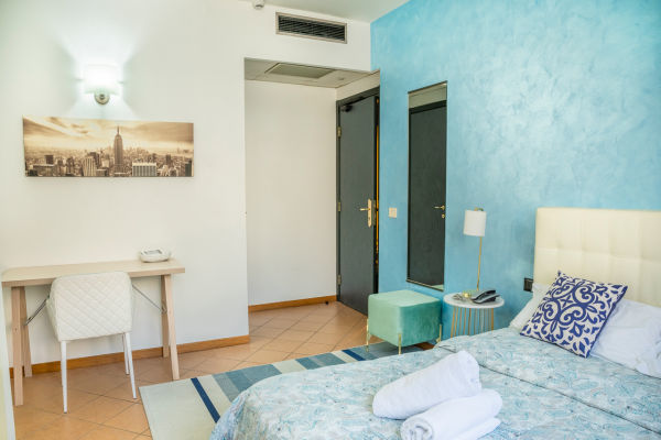 CAMERA TRIPLA: La tripla del Lake Como Golf Hotel è la soluzione ideale per famiglie di 3 persone o grruppi di amici alla ricerca di comfort, funzionalità e un ambiente rilassante a pochi minuti dal Lago di Como. Questa camera, di circa 15 mq, luminosa e ben insonorizzata, dispone di asciugacapelli, aria condizionata, riscaldamento autonomo, connessione Wi‑Fi gratuita e una TV con canali satellitari. È inoltre presente un minibar, una scrivania, una cassaforte. Gli ambienti sono curati e accoglienti, con arredi moderni e una piacevole vista sulla città. Ideale per godere del relax e la suggestione del lago, la tripla rappresenta un perfetto equilibrio tra qualità e convenienza, in un contesto verde e tranquillo vicino al Golf Club Carimate.
