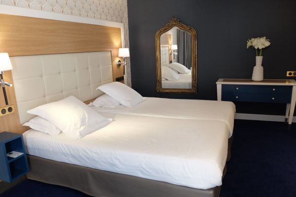 DOPPIA HARMONIE: Camera doppia caratterizzata dal comfort e da elegante decorazioni. Disponibile con un letto matrimoniale oppure con due letti separati. Climatizzata, con phon, telefono diretto, wi-fi, Tv Sat, cassaforte, minibar con soft drink gratuiti, bollitore per the o caffè.