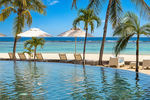 Lunga spiaggia di sabbia bianca corallina attrezzata con ombrelloni e lettini fino ad esaurimento. Teli mare gratuiti.