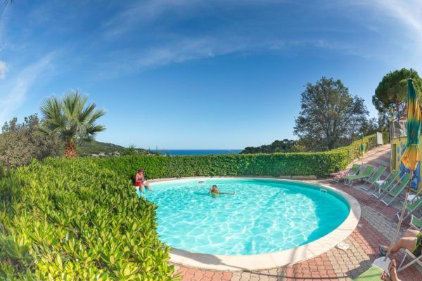 - Piscina grande di forma irregolare con terrazza- solarium con lettini, sdraio e ombrelloni e piscina per bambini rotonda e di più piccole dimensione che è in funzione da metà maggio fino a fine settembre a seconda delle condizioni climatiche.