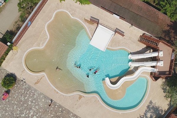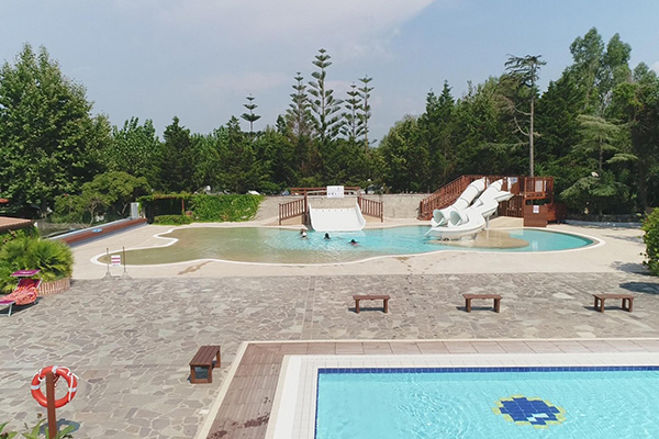 Tre piscine: una per adulti, una per bambini con scivolo Toboga Baby e una piscina Laguna per i più piccoli con ben quattro scivoli tematici (Huggy Buggy, Toboga Baby, Bumma a due piste).