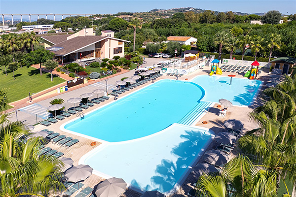 La piscina del villaggio, adatta sia ai più piccoli che agli adulti, vanta tre vasche di profondità variabili (cm 30, cm 60, cm 130). I più piccoli potranno divertirsi con i due acquascivoli, mentre gli adulti potranno godere di massaggi cervicali e dorsali grazie a funghi e lame d’acqua. Per chi cerca ulteriore relax, sono a disposizione anche due aree idromassaggio. Il chiosco-bar a bordo piscina completa l’esperienza. L’ingresso è gratuito, con lettini e ombrelloni disponibili fino a esaurimento. Le piscine sono aperte dal 21 maggio al 14 settembre dalle 10:00 alle 20:00.