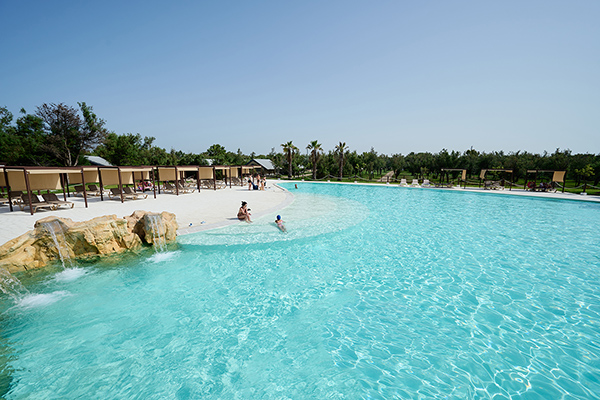 Goditi momenti di puro relax nell’area piscine, ideale per adulti e bambini. Il complesso include due piscine, una zona ristoro e un ampio solarium circondato da aree verdi. È possibile rilassarsi con il proprio asciugamano o noleggiare gazebi e lettini (a pagamento). Apertura da giugno a settembre; cuffia obbligatoria.