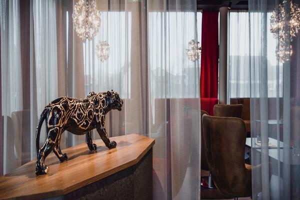 Oltre ai collegamenti di trasporto perfetti e alla posizione ideale, il nuovo Amedia Express Airport Hotel colpisce anche per il suo design unico, perché anche il design e lo stile di vita svolgono un ruolo importante in questo hotel. La lobby dell'hotel progettata dal designer Christian Bogner è una delizia quando entri per la prima volta nell'hotel. Il "Jet-Set Bar" interno accoglie gli ospiti con una buona selezione di bevande e snack ed è aperto tutti i giorni fino a mezzanotte.