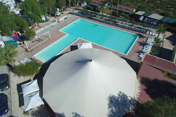 Al centro del villaggio si trova una grande piscina, ideale sia per adulti che per bambini, con tre diverse profondità (70 cm, 120 cm, 140 cm). Il solarium attrezzato con lettini gratuiti (fino ad esaurimento) offre un'area di relax perfetta. Accanto alla piscina, troverai un bar e servizi comodi come le docce. Le piscine sono aperte dall’ultima settimana di maggio fino al 07/09.