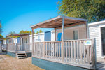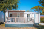 Happy Premium con terrazza in legno coperta a metà e piccola piastra elettrica: max. 6 pax.